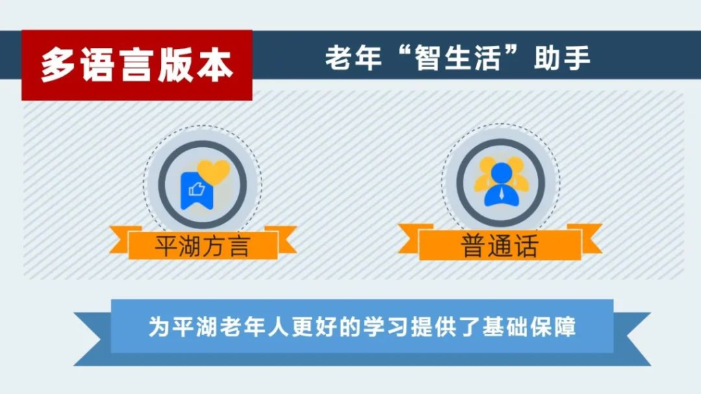 《老年“智生活”助手》課程以“平湖方言”、“普通話”兩種語(yǔ)言版本開(kāi)發(fā)建設(shè)。“平湖方言版”教學(xué)為平湖老年人更好的學(xué)習(xí)提供了基礎(chǔ)保障。